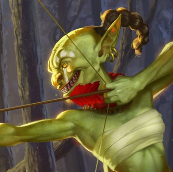 Suite à des cauchemars récurrents, elle a consulté une sorcière gobeline lui ayant conseillé de quitter sa tribu. Depuis elle entend des voix mais n'a plus jamais refait de mauvais rêves. Elle s'est d'ailleurs rapidement habituée aux voix résonnant dans sa tête et il lui arrive souvent d'entretenir des conversations avec elles, ce qui n'est pas sans dérouter ses compagnons.